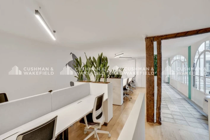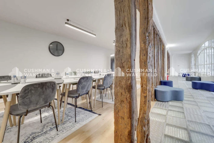 Répartis sur deux étages, dans un espace de travail calme donnant sur cour, les bureaux à louer se structurent naturellement en 4 open space de 6 à 10 personnes, agrémentés d'espaces de convivialité et d'un espace cuisine pour répondre à tous vos besoins quotidiens.