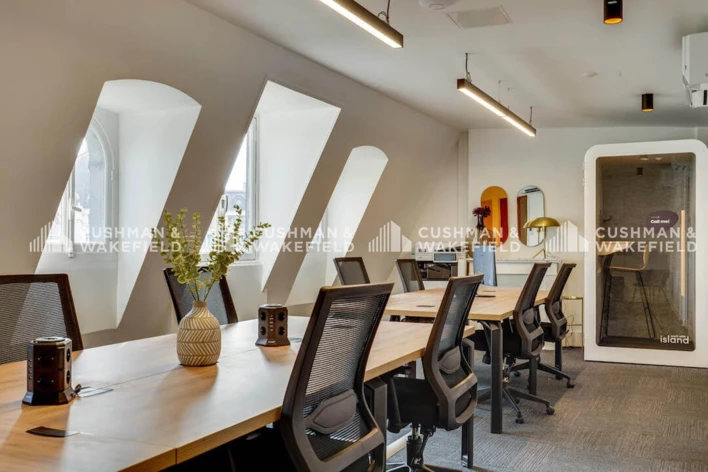 En plus du mobilier de bureaux fourni, chaque espace est doté d'espaces de réunion, convivialité, cuisine et phone booth.