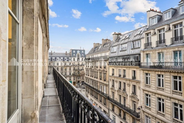 Installé au 4ème étage, cet espace très lumineux offre beaucoup de calme et dispose d'un balcon filant.
