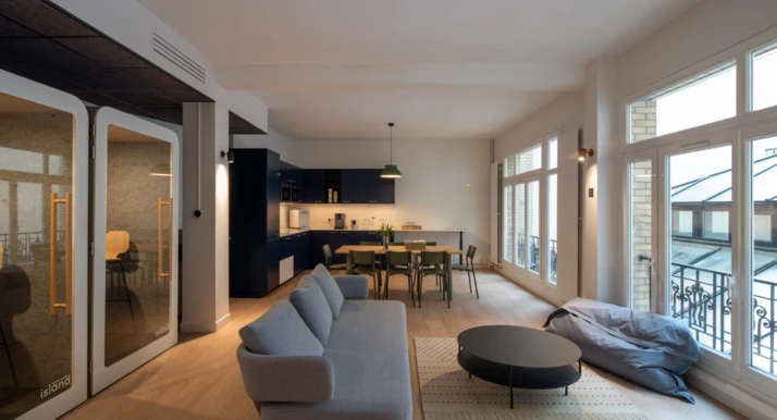 Optez pour la flexibilité immobilière à Paris 9 au sein d'un espace de travail en marque blanche loué en prestation de services et entièrement aménagé par notre partenaire.