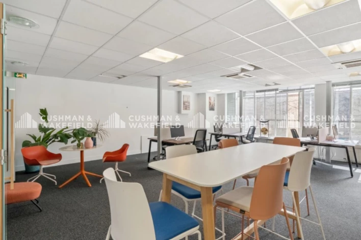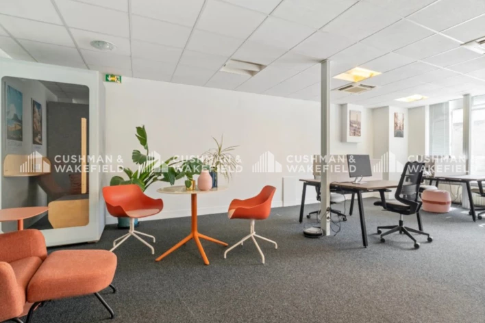 Le plateau de bureaux à louer en prestation de services est livré aménagé, tant en espaces de travail que d'espaces de convivialité.
