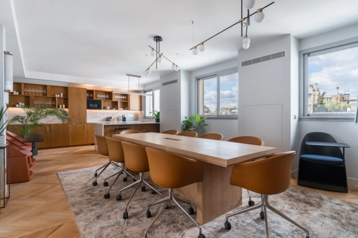 En plus des espaces de travail pouvant accueillir jusqu'à 100 postes de travail, cette solution de bureaux opérés vous offre de nombreux espaces extérieurs : 278 m² dont des terrasses au R+4 et R+5.
