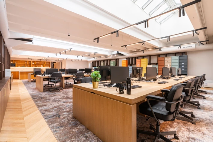 - Au R+1 : deux bureaux avec 6 postes chacun, un bureau de 4 postes, un bureau de 2 postes et deux phonebooths