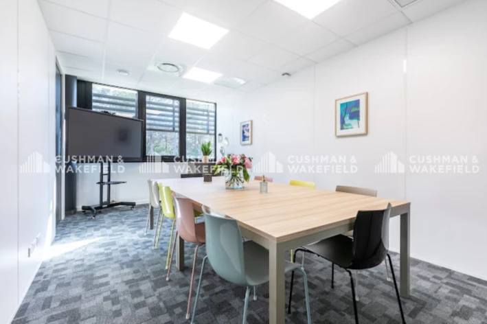 Nous vous proposons à la location en prestation de services un plateau aménagé privatif de 300 m² clé en main, jusqu'à 48 postes de travail.